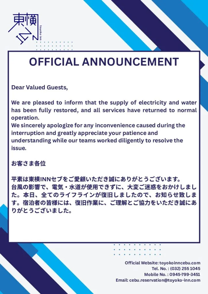 ライフライン復旧のお知らせ